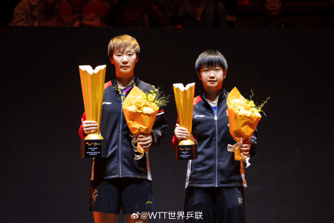 中国队获得的第二项冠军,是女子双打冠军,决赛由中国组合王曼昱/蒯曼对阵跨国组合早田希娜/朱芊曦,比赛结果,她们以3-1逆转夺得冠军。