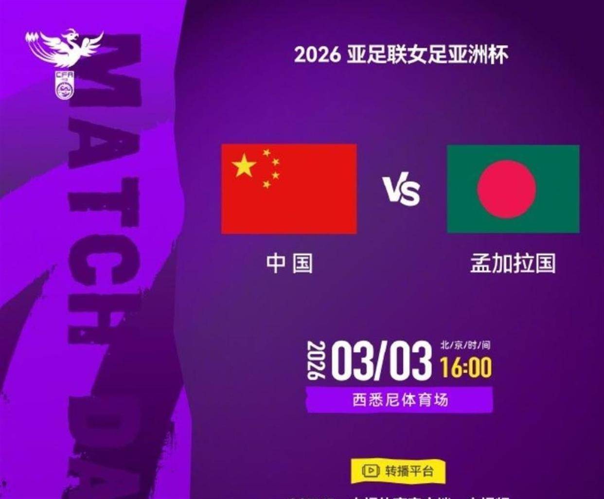 视线转到中国女足这边。 作为上届亚洲杯冠军,中国女足将在北京时间3月3日下午4点迎来卫冕首秀。 比赛地点是澳大利亚悉尼的西悉尼体育场,对手是孟加拉国女足。
