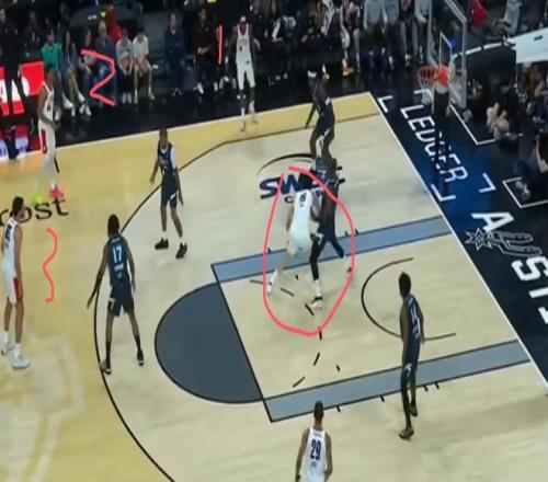 同时杨瀚森有低位脚步、背身单打能力以及体型优势,为了在低位将其进攻能力最大化,二、三号位就要有外线投射能力和支配球能力,好能最大限度牵扯对方防守人,给他拉开进攻空间。